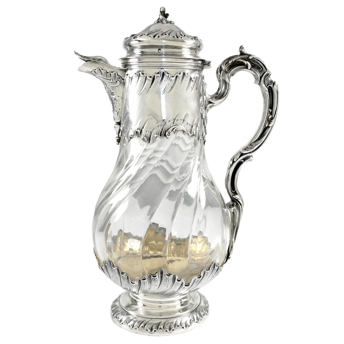Antique French Sterling Silver Glass Water Pitcher Decanter, Lemonade, Orange Juice