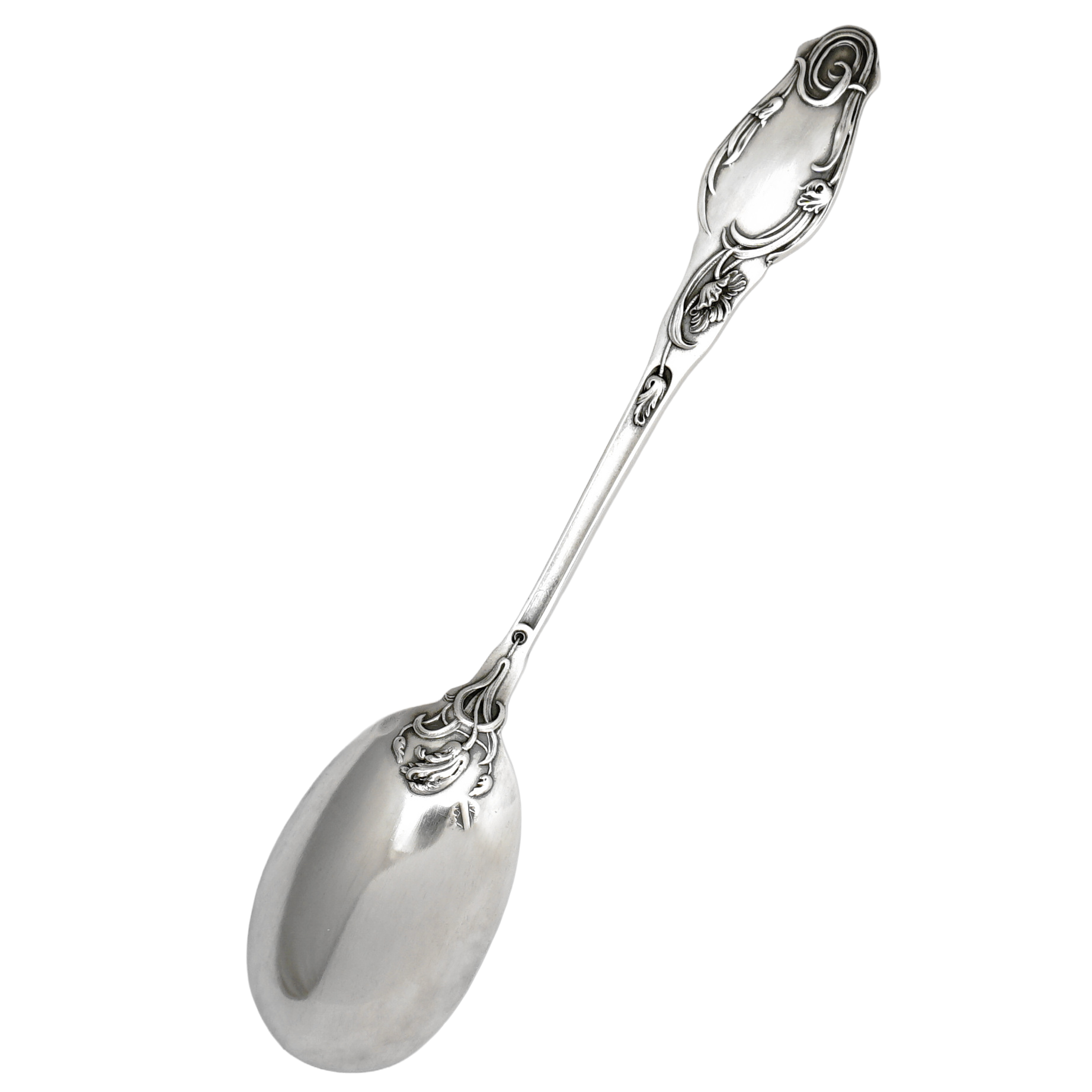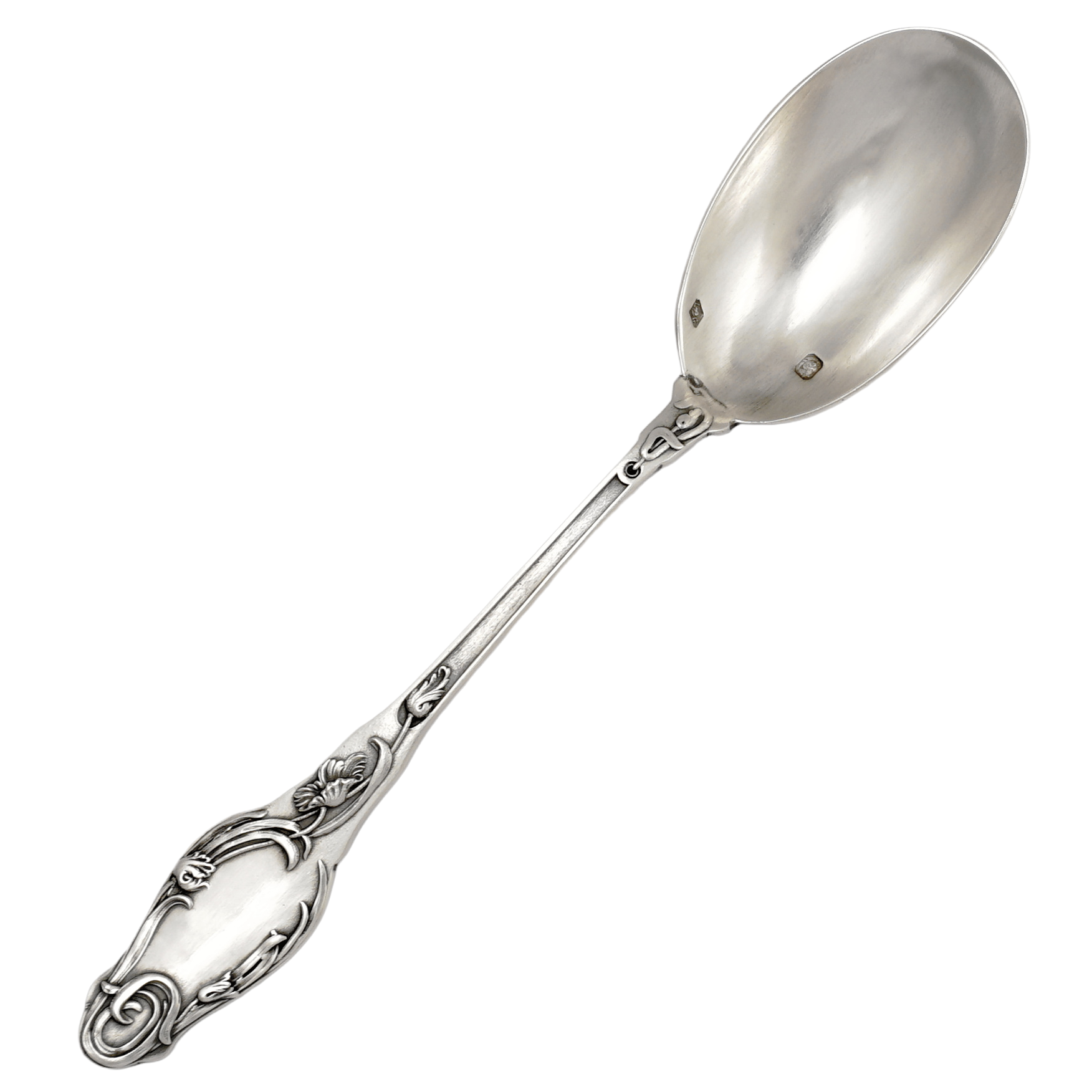 Antique French Sterling Silver Egg Spoon, Art Nouveau Poppy Flowers