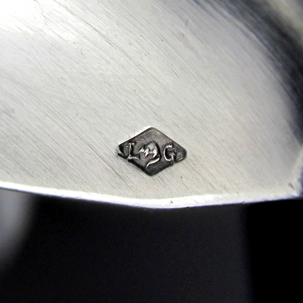 Antique French sterling silver egg spoon. In the pattern "Coquelicots", the motif comprises of Art Nouveau swirling leaves and stylized poppies. In overall good antique condition with general wear commensurate with age and use. Hallmarked with the French Minerve 1st standard mark indicating a silver content of .950/1000. Maker's marks for silversmiths Lapparra & Gabriel, active 1902-1923, at 157 rue du Temple, Paris. Measures 4 7/8" length. Weighs 16.7 grams.