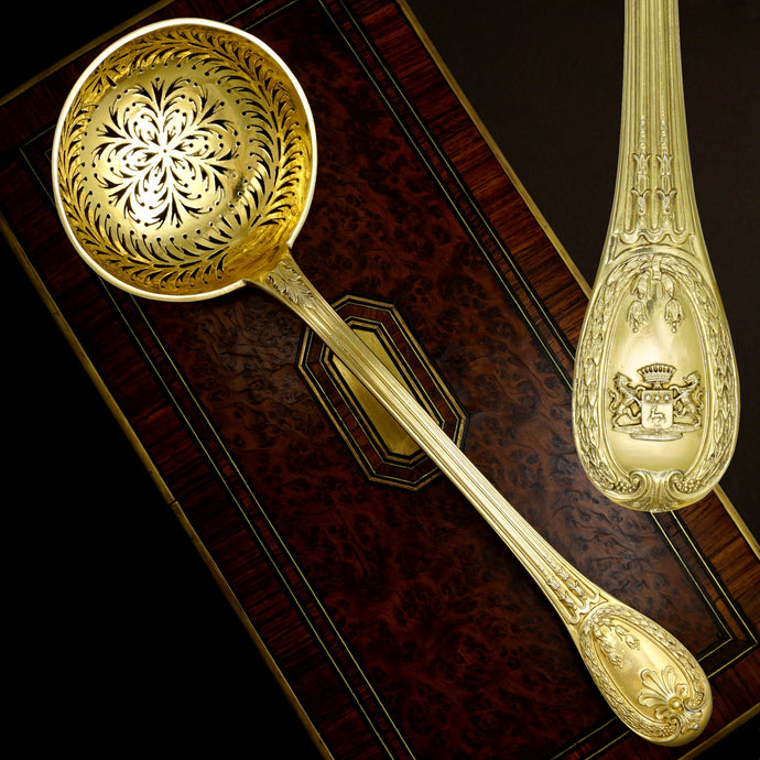 Puiforcat French Sterling Silver Gold Vermeil Sugar Sifter Spoon, Louveciennes