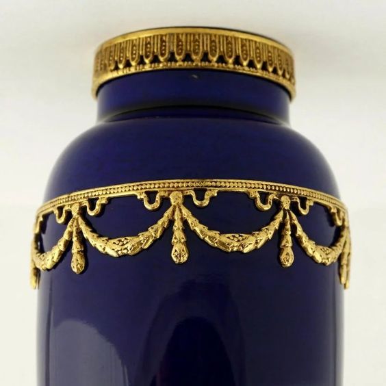 Antique French Sevres Porcelain Paul Milet Cabinet Vase Cobalt Blue Empire Style Gilt Bronze Ormolu Mounts