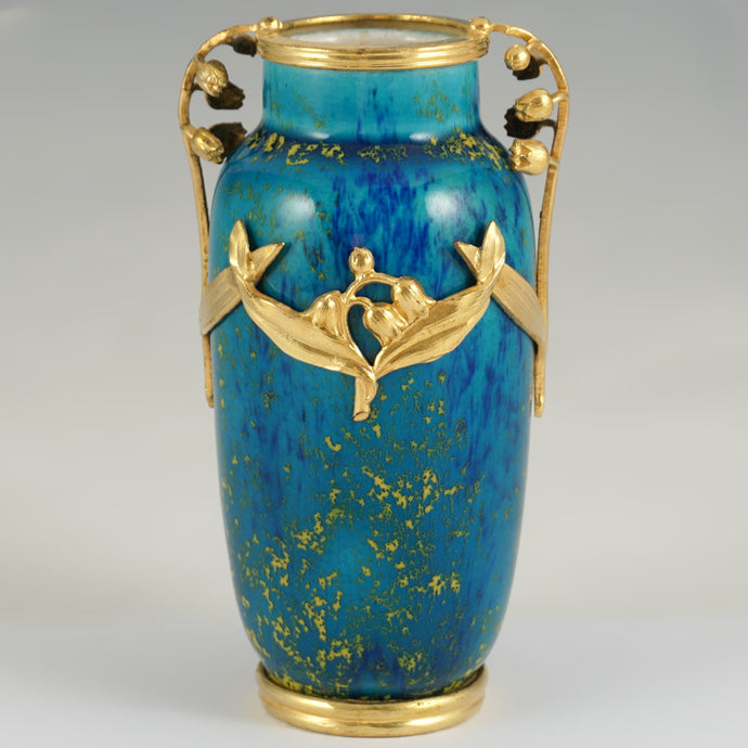 Art Nouveau French Sevres Paul Milet Porcelain Gilt Bronze Vase Flambe Glaze