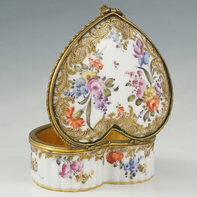 Antique Hand Painted Porcelain Raised Gold Enamel Heart Shaped Snuff Box