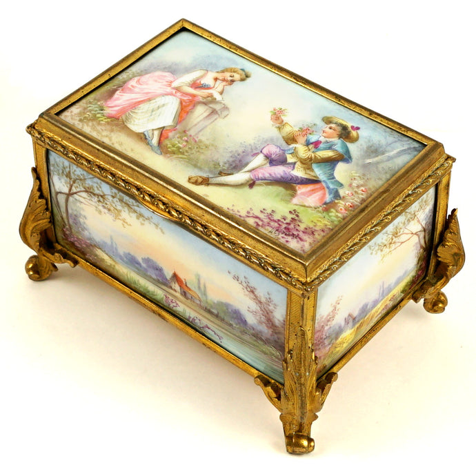Antique French Gilt Bronze & Porcelain Jewelry Box, Sevres Style