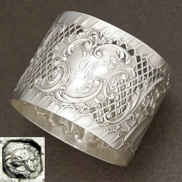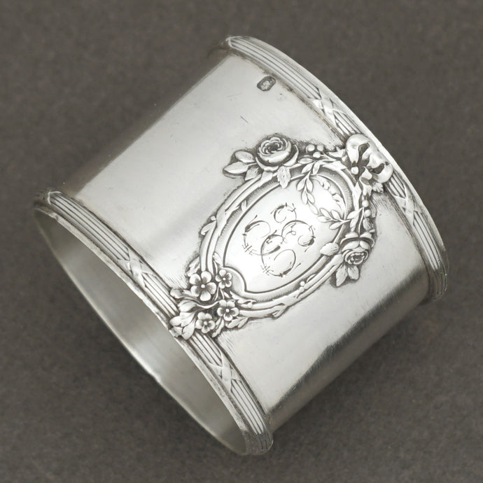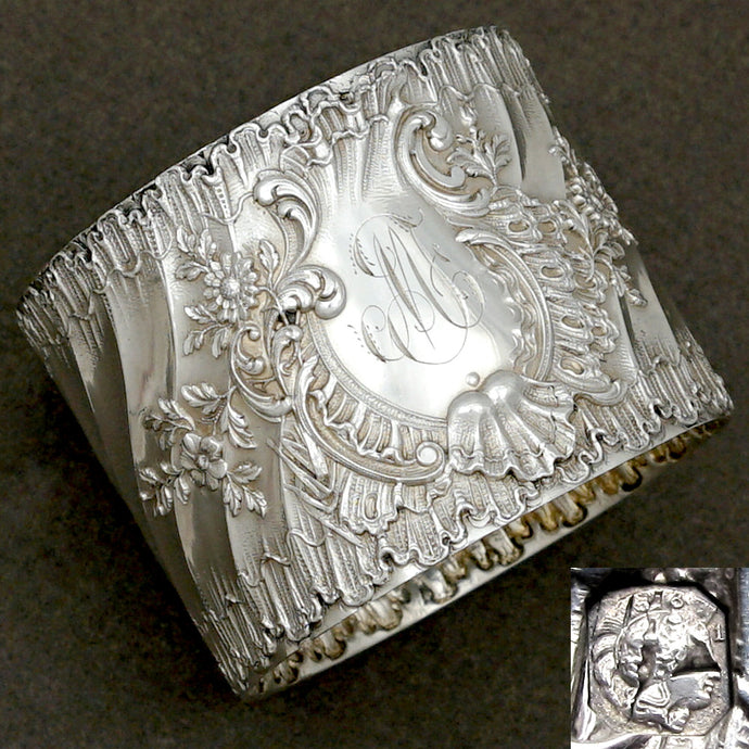Antique French Sterling Silver Napkin Ring Louis XVI Rococo Motif