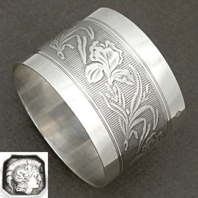 Antique Art Nouveau French Sterling Silver Napkin Ring Iris Flowers
